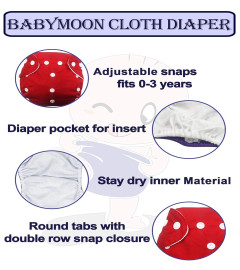 Description - Introducing Babymoon Reusable Cloth Diaper, a premium adjustable size waterproof washable pocket cloth diaper designed to provide comfort and convenience for your baby's diapering needs.