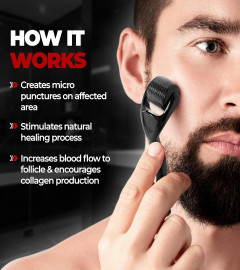Achieve a thicker, fuller beard with the Beardo Beard & Hair Growth Oil (30ml) and Derma Roller (0.5mm) combo – your ultimate solution for patchy beard growth and hair thinning. The Beard Growth Oil is enriched with natural ingredients that nourish the roots, strengthen hair follicles, and promote faster, healthier beard and hair growth. The 0.5mm Derma Roller boosts collagen production and improves blood circulation, helping the oil absorb more effectively for visible results. Ideal for treating uneven or patchy beards, this combo supports strong, dense, and long-lasting beard growth. Easy to use and safe for all skin types, it’s perfect for daily grooming. Whether you're starting your beard journey or aiming for a fuller look, this is the must-have beard care kit for men. Get ready to grow your best beard yet with Beardo!