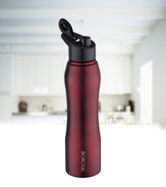 Borosil Stainless Steel Water Bottle, 750ml, Maroon, Set of 1