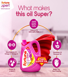 Fortune Xpert Total Balance Oil | Blend of Rice Bran, Soyabean & Flaxseed Oil | Balance of Fats & Omega 3 :Omega 6 | 5L Jar