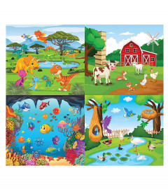 Funskool Play & Learn-Dino-Pets-Aquatic-Birds 4in1,Educational,4x30 Pieces,Puzzle,for 4 Year Old Kids and Above,Toy