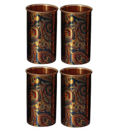 INDIAN ART VILLA Printed Copper Glass Tumbler, Drinkware & Serveware 300 ML, Blue, Set of 4