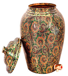 Indian Art Villa Printed Design Copper Water Dispenser Pot Matka 6 LTR, Bottle Green