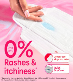 KEEPS YOU RASH FREE AND ITCH FREE: Thoughtfully designed with a dual cover topsheet these sanitary pads offer the comfort of silky soft pads without compromising on absorption.