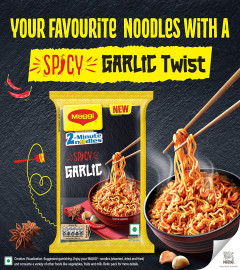 GARLIC TWIST: MAGGI 2-Minute Spicy Garlic Instant Noodles come with a delicious