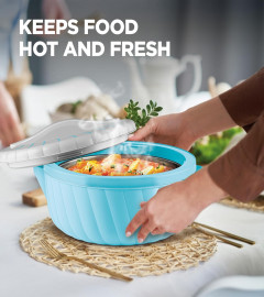 Introducing our range of aesthetically designed casserole set, the perfect solution to your worries about keeping food warm during dinner set or maintaining the freshness of cold dishes. With a blend of modern elegance and practical functionality, these PU-insulated casserole are made of the finest quality food-grade materials, ensuring safety and durability for everyday use. Whether you're serving a hot, comforting curry, crispy dosas, or chilled salads, our hot case casseroles are engineered to maintain the ideal temperature for an extended period. Our hot case casserole come equipped with a perfectly fitting, functional lid that locks. This ensures that your food remains fresh, flavorful, and free from contamination. Whether it's a savory gravy, fragrant rice, or even desserts like cakes and puddings, you can trust that each dish will stay just the way it should, with milton casserole set. These stylish casserole set not only perform exceptionally well but also add an aesthetic touch to your dining table. The sleek, modern design complements any occasion, be it a formal dinner party, a festive holiday meal, or a casual gathering. The chic, contemporary look of the casserole milton or milton hot pot makes them an eye-catching centerpiece, ensuring they stand out at any event. Designed for convenience, these casseroles are also an ideal companion for your travels. Whether you're heading to a family gathering, a picnic, or a weekend getaway, the portability and airtight lid ensure that your food remains secure, fresh, and ready to be served upon arrival. No more worrying about spills, temperature loss, or food getting soggy during transit. Perfect for storing a wide variety of dishes, from piping hot curries, fried snacks, and soups to cold salads, fruits, and dips, our casseroles ensure that you can serve a wide range of delicious meals without any hassle. Ideal house warming gift or small gift box or Kitchen Gift Items for Marriage or kitchen items for gift use as a rice pot also.