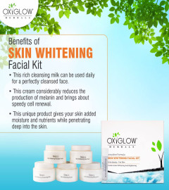 Oxyglow skin whitening facial kit is a 6 step skin whitening formulation to improve your complexion. Enriched with the natural goodness of natural ingredients, this treatment kit helps make the skin fairer, glower and smoother. Package contains: Skin whitening cleansing milk, skin whitening scrub, skin whitening massage cream, skin whitening mask, skin whitening fairness cream, smooth shine skin serum.
