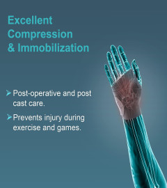 Provides required compression to allay pain and inflammation. Anatomical thumb opening is designed for slight abduction and comfort of thumb with free movement of thum and fingers.