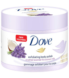 with Dove Polish Scrub. Its soothing and luxurious blend of Crushed Lavender