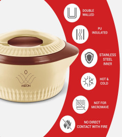 stainless steel casserole keeps food hot and fresh for hours. The refined