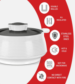stainless steel casserole keeps food hot and fresh for hours. The refined