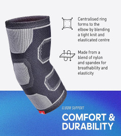 Allowing you to keep pushing with your training, the knitted adidas Elbow Support helps to keep you moving and progressing through tough training periods. Ergonomically designed, the adidas Elbow Support is created to provide structured reinforcement to the entire elbow without limiting your movement or performance. Made from a blend of nylon and spandex, the breathable and elasticated material provides support that forms to your arm with a centralised ring that blends a tighter knit with a panel of greater elasticity, allowing the support to fully form to your elbow joint. Complete with thick cuffs at both the top and bottom, the Elbow Support stays put through energetic training sessions yet remains easy to put on and take off. To improve both comfort and stability, the Elbow Support’s strategically placed panels feature varying knit patterns that converge to form around the elbow with differing levels of elasticity for tailored and effective support.