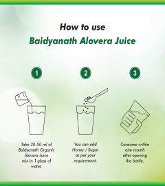 Baidyanath Aloe Vera Juice with pulp condenses the magical benefits of this herb into a healthy, herbal and wholesome drink. It boosts immunity, builds a healthy digestive system and gives relief from constipation. Reduces fat and tones your body. It protects your liver. Alleviates skin allergies.Baidyanath Aloe Vera Juice is 100% pure, natural & fre from any synthetic flavor & color. It contains several vitamins and minerals that your body needs for its good nutrition.