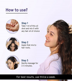 HOW TO USE: Shake well before use. Unplug the bottle and take 1 ml of oil shot.. Mix it with the hair oil of your choice. Apply that mixture to your hair roots and massage gently for 3-5 minutes