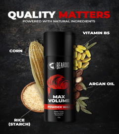 Strong All-Weather Hold: Pick Beardo Max Volume Powder Wax to hold your hair style throughout the day, no matter the conditions.