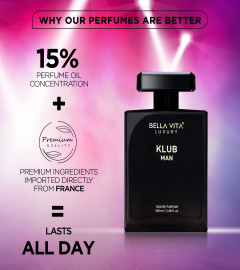 Bella Vita Luxury KLUB Man Eau De Parfum Perfume for Men with Lemon, Rose and Vanilla|Musky and Spicy Long Lasting Premium EDP Fragrance Scent, 100Ml
