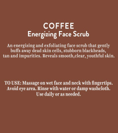 Biotique Coffee Energizing Face Srcub, 50g An energizing and exfoliating face scrub that gently buffs away dead skin cells, stubborn blackheads, tan and impurities. Reveals smooth, clear, youthful skin.