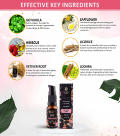 Anti Aging Serum - Safflower with natural vitamin E protects cells in the skin from sunlight damage. Gotu Kola extract in face serum for women reduces hyperpigmentation making your skin radiant. Licorice removes excess melanin preventing new spots and removing the old ones. Ayurveda face oil for dry skin leads to reduction in wrinkles, blemishes & dark spots