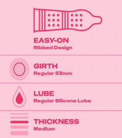 Durex Extra Ribbed Condoms have a distinct texture combination, giving you that extra something for enhanced sensuality. These transparent condoms have a unique ribbed and raised-dots texture designed to maximize stimulation for you and your partner. The easy-on shape is for comfort and fit. The condoms also smell better which helps avoid unpleasant distractions and you can relax and enjoy to the fullest. Each Durex condom is dermatologically tested to ensure strength and a high level of protection. No method of contraception can give you 100% protection against pregnancy, HIV or sexually transmitted infections. Please read the instructions, especially when using condoms for anal or oral sex. Try different Durex condoms or indulge in Durex’s Play range of lubricants and ring to make love-making comfortable and exciting!