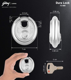Package Inclusions: 1n Godrej duralock ultra xl+ 70 mm padlock, 3n keys