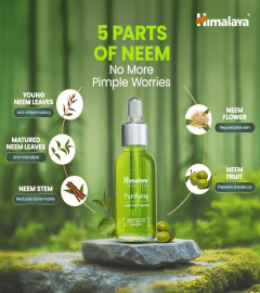 Himalaya Purifying Neem Face Serum is designed to fight pimples and fade marks with a blend of science and nature. The phyto-purifying complex combines 2% natural Salicylic Acid to exfoliate and unclog pores, Cica to calm irritation and reduce redness, and Neem for its purifying and antibacterial action.
