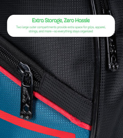 Spacious & Organized : Two large compartments fit rackets, shoes, and gear.
