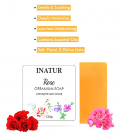 Inatur Rose & Geranium Sugar Soap, 125 gm x 2 pack (free shipping)