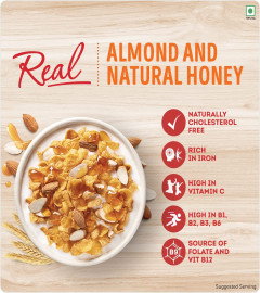 Packed with Nutrients - Now don't compromise on morning nourishment with Kellogg's Corn Flakes Real Almond Honey. It is not only yummy but is also High in Iron, Vitamin B1, B2, B3, B6, C and a source of Vitamin B12 and Folate.