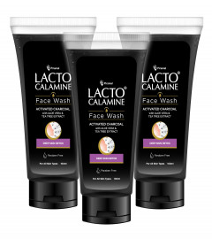Lacto Calamine Activated Charcoal Face Wash enriched with Tea tree extract & Aloe Vera deep cleanses and detoxifies your skin. It helps removes excess oil, dirt and impurities. The natural properties of the tea tree extracts & aloe vera make the product suitable for oily and acne prone skin. Charcoal Face Wash