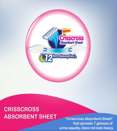New "Crisscross Absorbent sheet" which absorbs 7 glasses of urine and spreads it equally, so diaper does not look heavy, so it lasts upto 12 hours