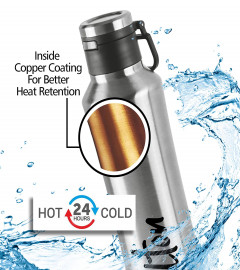 Leak Proof: Yes; Retain temperature: Yes; Double walled Vacuum insulated technology keeps beverages hot or cold for long hours, Inner copper coating for better temperature retention