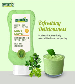 RICH INDIAN FLAVOR & VERSATILE USAGE – Naturin Mint Mayonnaise adds a refreshing twist to your meals. Enjoy it as a dip, spread, or dressing with pizza, pasta, burgers, pakoras, samosas, chaat, sandwiches, and more.