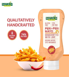 VERSATILE & DELICIOUS: Naturin Peri Peri Mayo brings a rich, creamy texture and bold hot-sweet flavour that complements a variety of dishes. Whether it’s pasta, pizza, burgers, samosas, pakodas, chaats, or even simple bread, this mayo enhances every bite. Its smooth consistency makes it a perfect dip, spread, or mix-in for your favourite snacks and meals. Turn ordinary food into a mouth-watering experience with just a dollop.