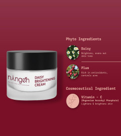 Ningen Brightening Cream powered with Vitamin-C, Daisy and Plum extract removes tan, reduces blemishes and darkness making your skin glow like never before.