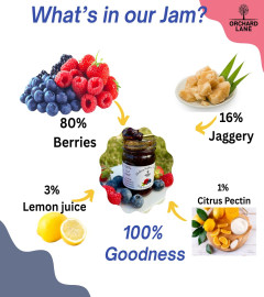 Jams do not always have to be filled with sugar. We believe that jams needs to be reformed and the focus should be fruits- not sugars or chemicals. Orchard Lane Strawberry Jam is made with finest strawberries and bare minimum sugar. We have the highest fruit content at 80% fruit in each jar - and still being 100% natural- with no presrevatives, colours or chemicals. Made with hand-picked fruit. Lab tested for its nutrition content Only 7 calories per teaspoon