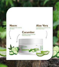 Reduces acne marks, dark spots and rashes- Aloe vera treats hyperpigmentation, whereas glycerin reduces dark spots by naturally exfoliating the skin.Apply organic aloe vera gel to your face and body regularly to see the acne marks and rashes fading away soon.