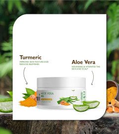 Reduces acne marks, dark spots and rashes- Aloe vera treats hyperpigmentation, whereas glycerin reduces dark spots by naturally exfoliating the skin.Apply organic aloe vera gel to your face and body regularly to see the acne marks and rashes fading away soon.