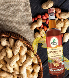 ORGANIC INDIA Groundnut OIl (Peanut Oil) Groundnut Oil (peanut oil) naturally contains antioxidants Vit A and E, as well as monounsaturated fatty acids (PUFA), which help in lowering cholesterol. One of the healthiest cooking oils, it has a high smoke point which makes it perfect for frying and cooking at high temperatures without burning. This is expeller pressed, double filtered and healthier than refined version of the same oils.