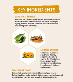 Active ingredients: liquorice extract, chamomile extract, aloe vera extract, biosaccharide gum