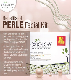 Pearl Facial Kit Pearl Facial Kit For milky white skin with no blemishes & pigmentation, all you to do is trust the wonders of the pearl facial kit by OxyGlow. Pear Power acts as a mild lightning agent. It is easily absorbed into the skin, leaving it spotless. It also freshens up your complex while granting the skin the needed hydration without disturbing the pH balance. OxyGlow Pearl Facial Kit is your first step towards a long-lasting natural glow OxyGlow Pearl Facial kit is an effective skin treatment for clear and blemish free skin. Perfectly suitable for oily skin, this pearl facial kit works wonders on the skin to naturally brighten your complexion. This kit helps clean your pores and give you an even skin tone. It is suitable for all skin types. Skin Whitening Treatment OxyGlow Pearl Facial kit is a Skin Whitening Treatment for milky white, blemish free skin. Perfectly suitable for oily skin, this pearl facial kit works wonders on the skin to naturally brighten skin complexion. • Stimulates skin cells • Energized and youthful skin • Deep Clean Pores • Even Tone How to Use Pearl Facial Kit? STEP 1: Clean your face with Cleansers to remove dirt & oil from face. STEP 2: Scrub your face with an exfoliating Scrub. Wash off with cold water. STEP 3: Massage face with Massage Cream or Gel for 5 min. Clean with moist cotton. STEP 4: Apply Mask or pack on face. Avoid eyes area. Let it dry. Rinse off. STEP 5 : Apply good amount of Moisturizer cream on your face & neck. STEP 6: Spread 2-4 drops of Smooth Skin serum on face. Let it absorb.
