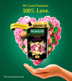 Palmolive luminous oils invigorating handwash is specially made with the luxuriously rich blend of macadamia oil and peony extracts for your soft hands. The fragrant skincare formula is infused with botanical oil and helps to gently, yet thoroughly cleanse your hands. Use palmolive luminous oils handwash daily for germ-free, soft and smooth hands. Available in 500 ml pump bottle.