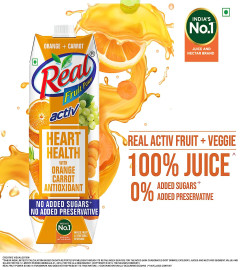 Real Activ Orange Carrot Fruit Juice - 1L | No Added Sugars, No Added Preservatives | Helps in Heart Health | Mix Fruit & Vegetable Juice | Tasty, Healthy & Refreshing Drink