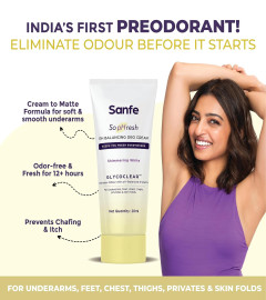 FRESHNESS FOR EVERY PART - Sanfe So pHresh Balancing Deo Cream- Shimmering White is a unique formulation of cream that controls the odour from sweating without blocking sweat glands. It can be used on pits, intimate areas, feet, underboob areas, butt cracks and skin folds.