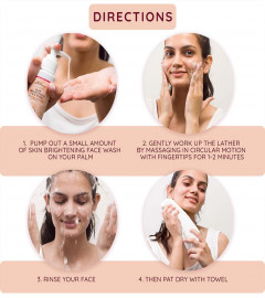 HOW TO USE-Wet your face and neck. Pump out a small amount of skin brightening face wash on your palm. Gently work up the lather by massaging in circular motion with fingertips for 1-2 minutes. Thoroughly rinse and pat dry. We recommend applying the face wash 2 times a day.