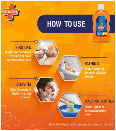 Antiseptic Disinfectant for first aid, medical and personal hygiene. Savlon Antiseptic liquid smoothly cleanses and helps avoid infection aiding the natural healing of minor skin injuries including Insect bites & stings, cuts & grazes, minor burns & scalds, bathing & midwifery.