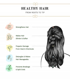 Powered with Ayurvedic herbs and Vitamin E which makes hair soft, provides shine to hair, strengthen hair strands, prevent hair breakage and split ends