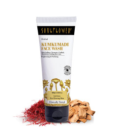 GLOWING & BRIGHTENING SKIN: Soulflower Instant Lightening & Brightening Kumkumadi facewash brightens dull skin tone & moisture your dry skin. Mulethi & Wild turmeric in kumkumadi facewash helps brighten skin, reduce pigmentation & give your skin a brightening glow.