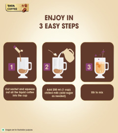 USAGE INSTRUCTIONS: Make it in 3 easy steps. Cut sachet and squeeze out all the liquid into the cup. Add 200ml (1 cup) chilled milk (add sugar as needed). Stir to mix.