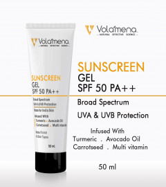 Volamena Sunscreen Gel with SPF 50 ++ Is Matte finish, dry touch & quick-absorbing formula for Normal to dry skin, It works to prevent all types of sun damage, including dryness, wrinkles, pigmentation & dark spots.