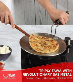 MAGNETICALLY INDUCTIVE - Designed for modern kitchens, this triply tawa works like a charm on induction cooktops. Unlock versatile cooking possibilities and convenience with magnetic stainless steel.